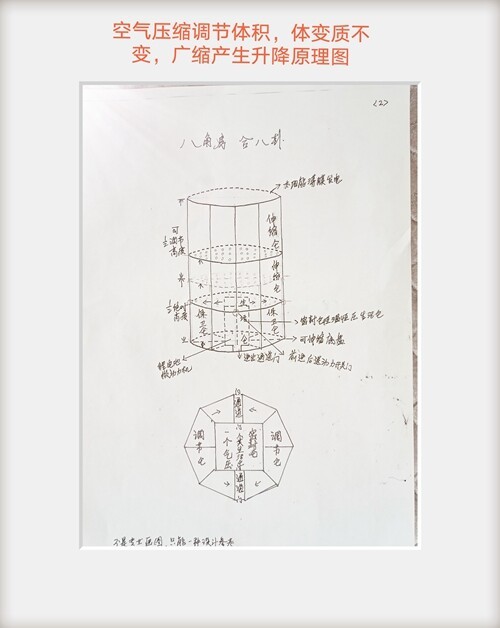 故此我们在宇宙中盖房,必须要自然力结合意识力,充分利用有利的空气浮沉原理即自然力,调节离心力和引力间关系。使人造天体八角房的研制适应大气层安全升降来回,进出大气层创造万能有利条件!