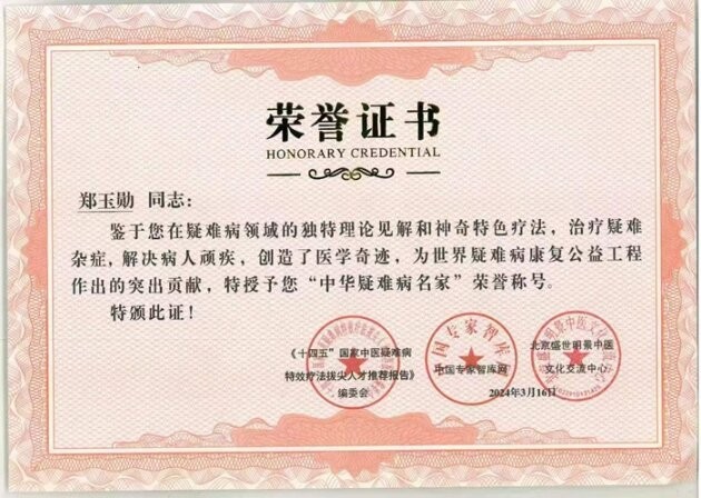 郑玉勋,主任中医师,特聘客座教授。1939年生,自幼师承老中医李公坦(化名,袁世凯的保健医)。奠定了一定的中医学基础。1963年调到国防科委第九研究院工作,(代号221),参加第一颗原子弹和第一颗氢的研制工作。后来被保送“哈军工”深造。隐姓埋名21年。退休后继续从事中医临床医疗工作。不图老有所养,立意老有所为。大力弘扬中医国粹,让健康走进千万百姓家。退而不休习中医,承古创新医顽疾。